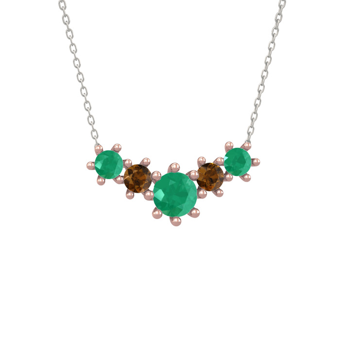 Kök zümrüt ve dumanlı kuvars 8 ayar rose altın kolye (40 cm gümüş rolo zincir)