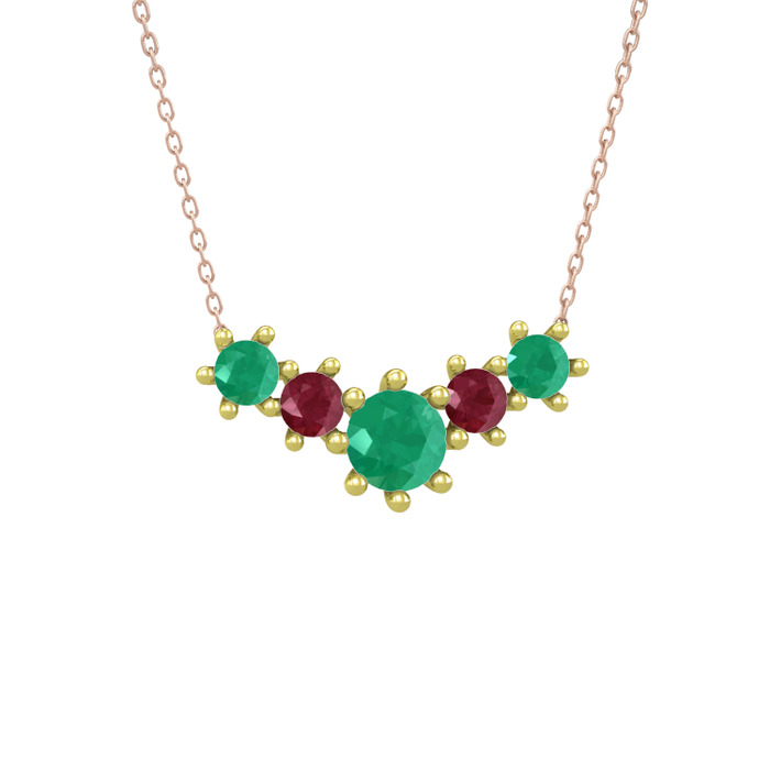 Kök zümrüt ve kök yakut 8 ayar altın kolye (40 cm rose altın rolo zincir)