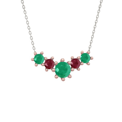 Kök zümrüt ve kök yakut 8 ayar rose altın kolye (40 cm beyaz altın rolo zincir)