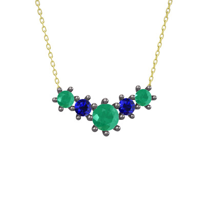 Kök zümrüt ve lab safir 925 ayar siyah rodyum kaplama gümüş kolye (40 cm gümüş rolo zincir)