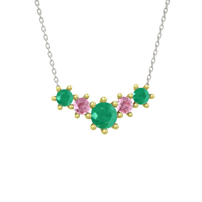 Kök zümrüt ve pembe kuvars 18 ayar altın kolye (40 cm beyaz altın rolo zincir)