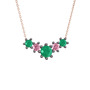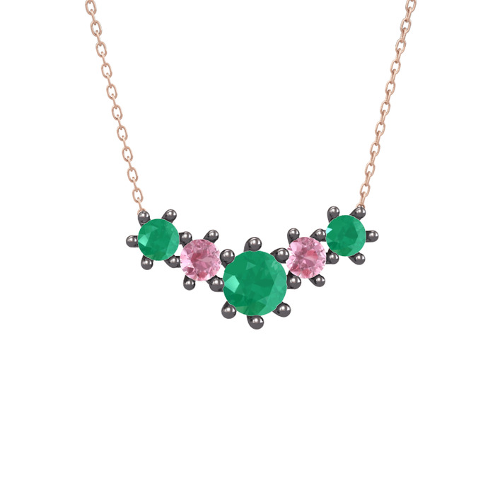 Kök zümrüt ve pembe kuvars 925 ayar siyah rodyum kaplama gümüş kolye (40 cm rose altın rolo zincir)