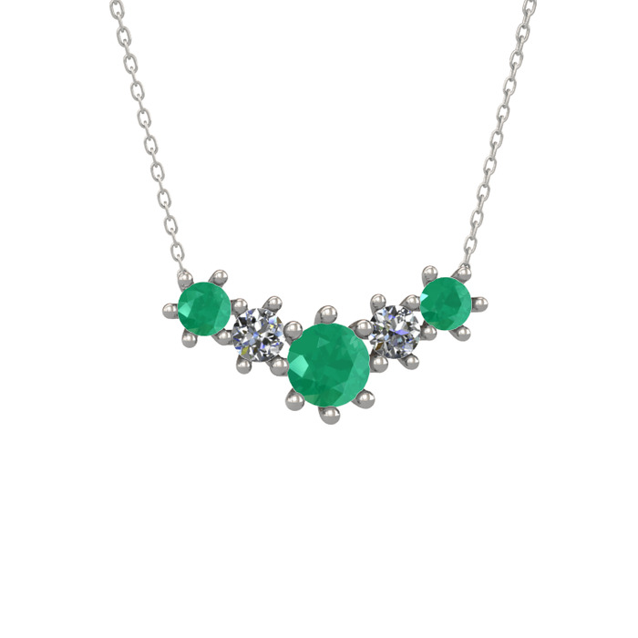 Kök zümrüt ve pırlanta 18 ayar beyaz altın kolye (0.32 karat, 40 cm beyaz altın rolo zincir)