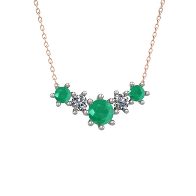 Kök zümrüt ve pırlanta 18 ayar beyaz altın kolye (0.32 karat, 40 cm rose altın rolo zincir)