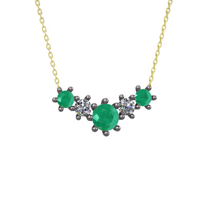 Kök zümrüt ve pırlanta 925 ayar siyah rodyum kaplama gümüş kolye (0.32 karat, 40 cm altın rolo zincir)