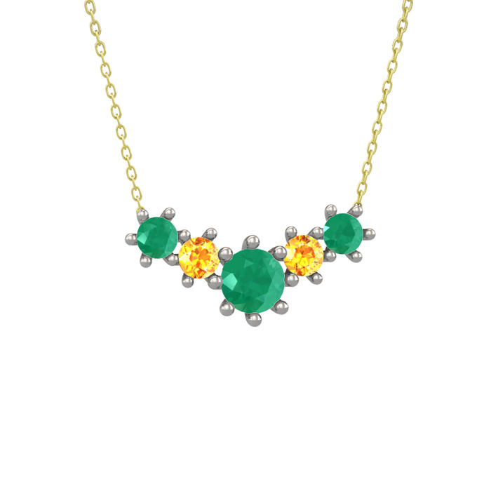 Kök zümrüt ve sitrin 925 ayar gümüş kolye (40 cm altın rolo zincir)