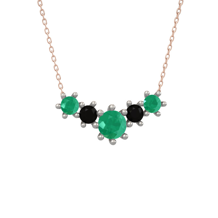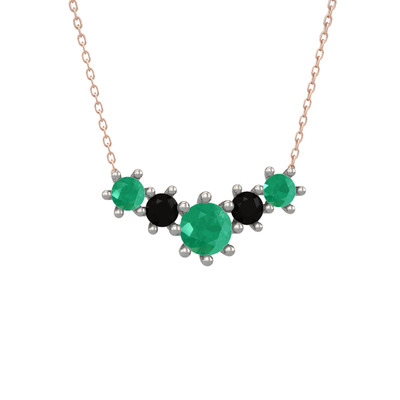 Kök zümrüt ve siyah zirkon 925 ayar gümüş kolye (40 cm rose altın rolo zincir)