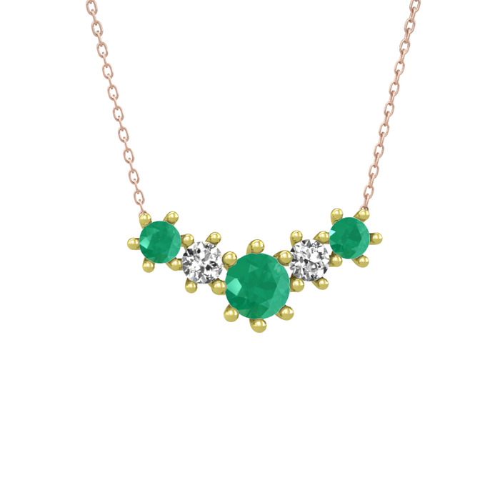 Kök zümrüt ve swarovski 8 ayar altın kolye (40 cm rose altın rolo zincir)