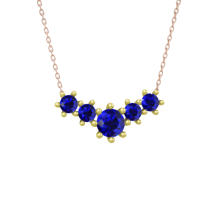 Lab safir 14 ayar altın kolye (40 cm gümüş rolo zincir)