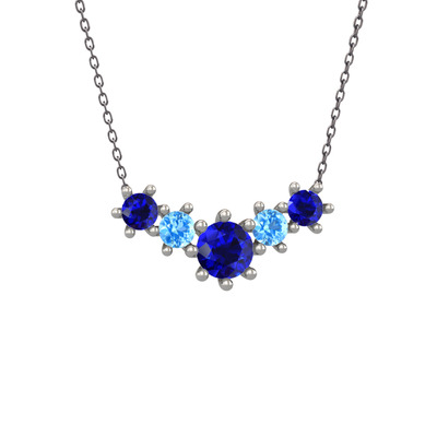Lab safir ve akuamarin 14 ayar beyaz altın kolye (40 cm gümüş rolo zincir)