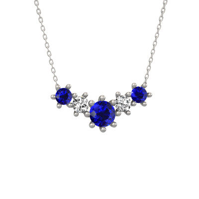 Lab safir ve beyaz zirkon 14 ayar beyaz altın kolye (40 cm beyaz altın rolo zincir)