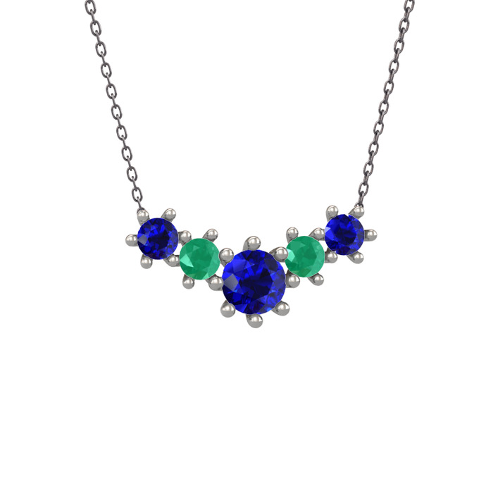 Lab safir ve kök zümrüt 8 ayar beyaz altın kolye (40 cm gümüş rolo zincir)