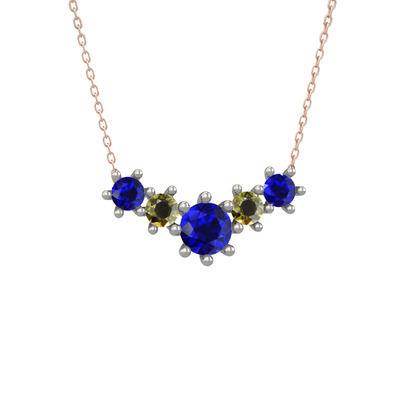 Lab safir ve peridot 14 ayar beyaz altın kolye (40 cm rose altın rolo zincir)