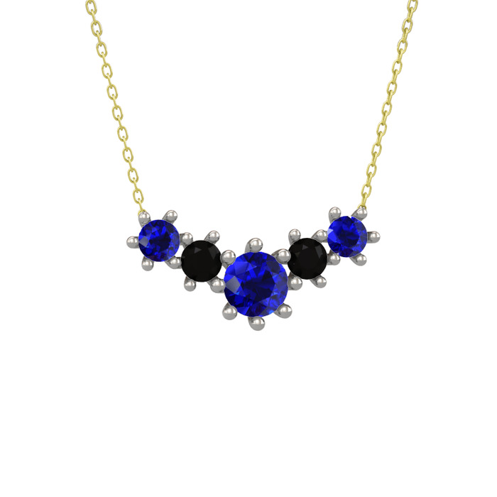 Lab safir ve siyah zirkon 18 ayar beyaz altın kolye (40 cm altın rolo zincir)