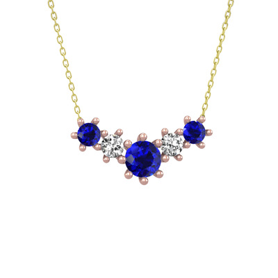 Lab safir ve swarovski 8 ayar rose altın kolye (40 cm gümüş rolo zincir)