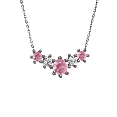 Pembe kuvars ve beyaz zirkon 925 ayar siyah rodyum kaplama gümüş kolye (40 cm gümüş rolo zincir)