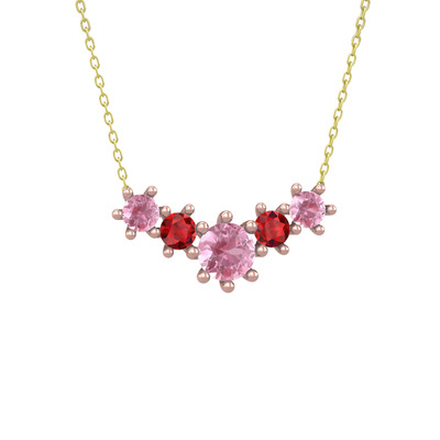 Pembe kuvars ve garnet 14 ayar rose altın kolye (40 cm altın rolo zincir)