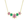 Pembe kuvars ve kök zümrüt 14 ayar altın kolye (40 cm gümüş rolo zincir)