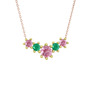 Pembe kuvars ve kök zümrüt 18 ayar altın kolye (40 cm rose altın rolo zincir)