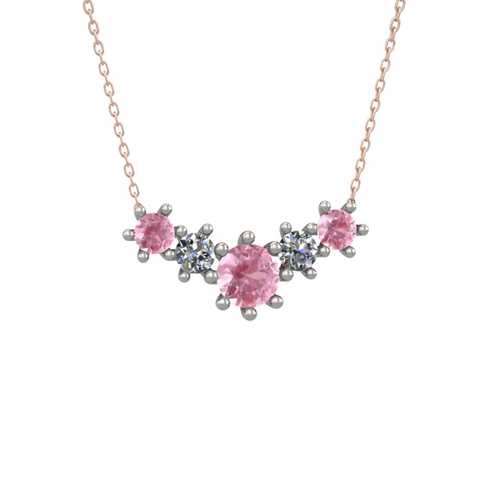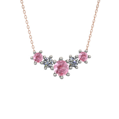 Pembe kuvars ve pırlanta 18 ayar beyaz altın kolye (0.32 karat, 40 cm gümüş rolo zincir)