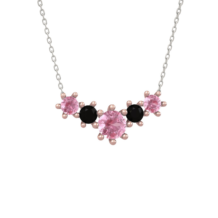 Pembe kuvars ve siyah zirkon 18 ayar rose altın kolye (40 cm gümüş rolo zincir)