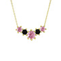 Pembe kuvars ve siyah zirkon 8 ayar altın kolye (40 cm gümüş rolo zincir)