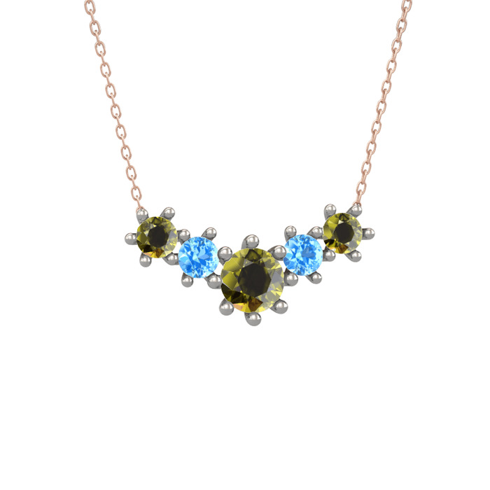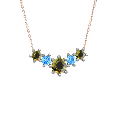 Peridot ve akuamarin 18 ayar beyaz altın kolye (40 cm gümüş rolo zincir)