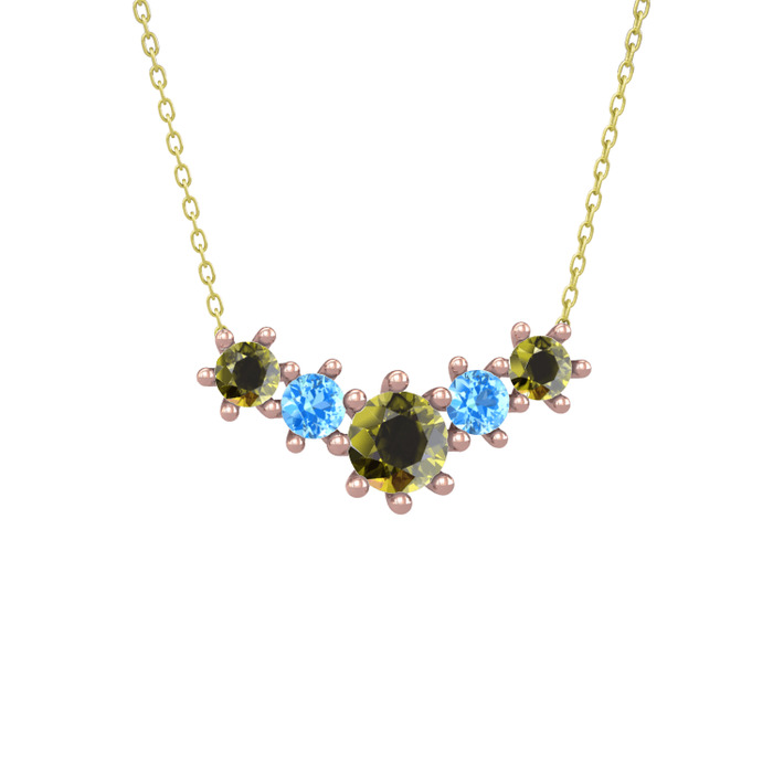 Peridot ve akuamarin 18 ayar rose altın kolye (40 cm gümüş rolo zincir)