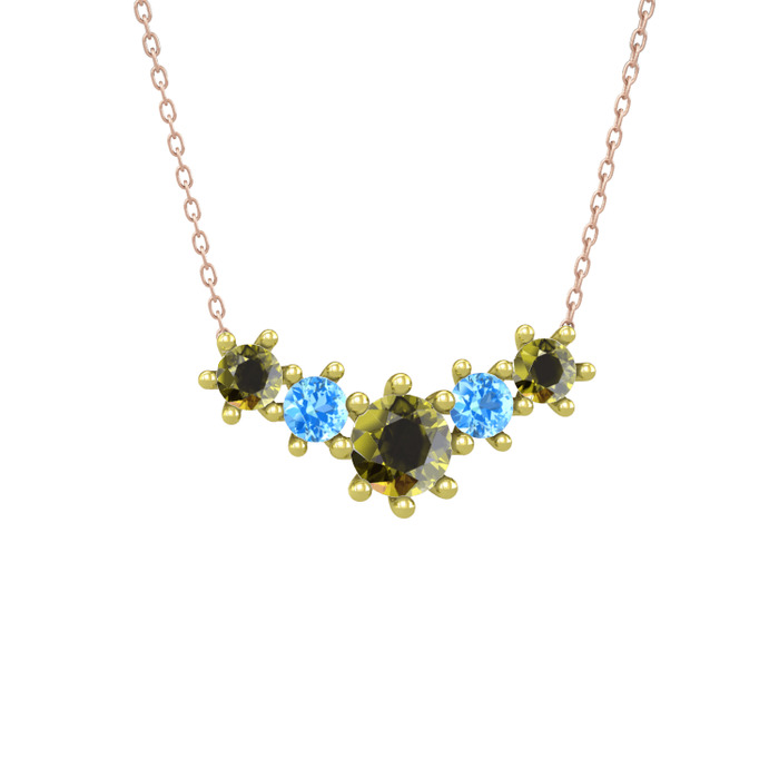 Peridot ve akuamarin 925 ayar altın kaplama gümüş kolye (40 cm rose altın rolo zincir)