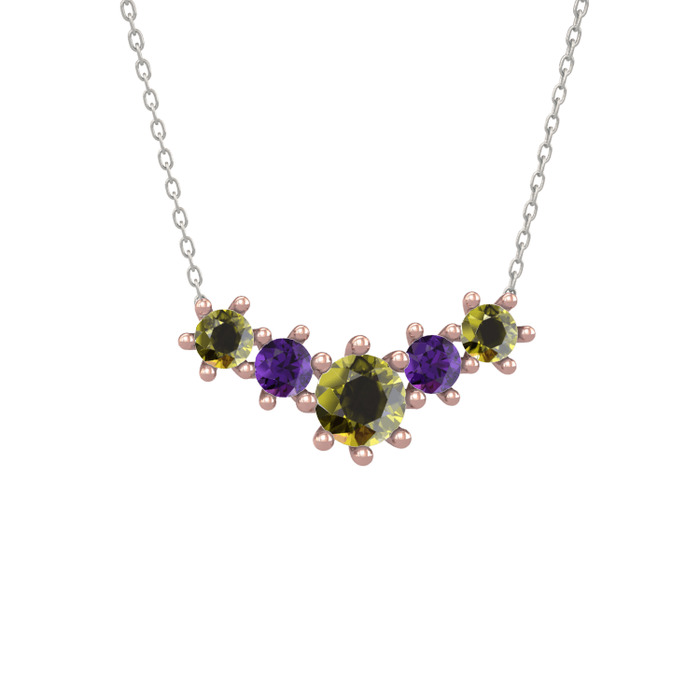 Peridot ve ametist 14 ayar rose altın kolye (40 cm beyaz altın rolo zincir)