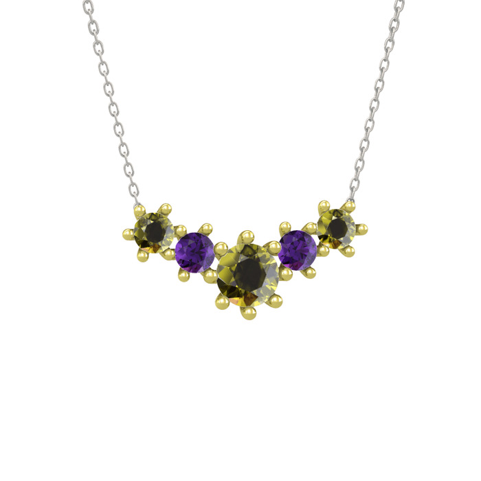 Peridot ve ametist 18 ayar altın kolye (40 cm beyaz altın rolo zincir)