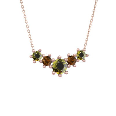 Peridot ve dumanlı kuvars 14 ayar rose altın kolye (40 cm gümüş rolo zincir)