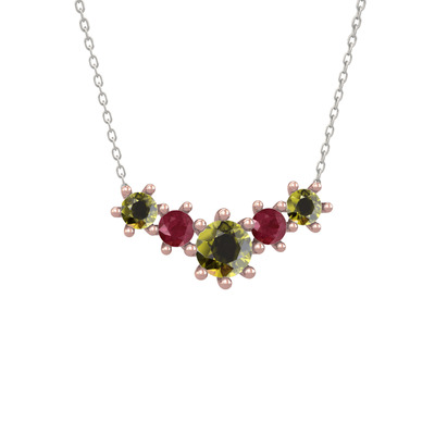 Peridot ve kök yakut 925 ayar rose altın kaplama gümüş kolye (40 cm gümüş rolo zincir)
