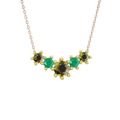 Peridot ve kök zümrüt 925 ayar altın kaplama gümüş kolye (40 cm gümüş rolo zincir)