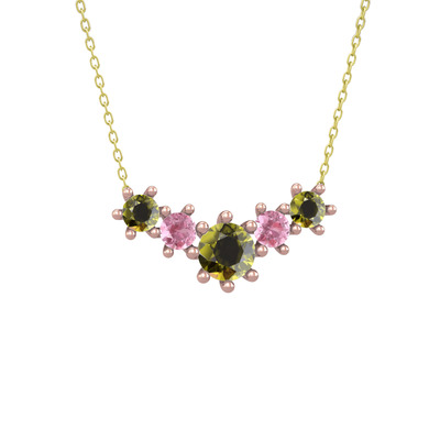 Peridot ve pembe kuvars 14 ayar rose altın kolye (40 cm altın rolo zincir)