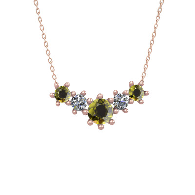 Peridot ve pırlanta 14 ayar rose altın kolye (0.32 karat, 40 cm rose altın rolo zincir)