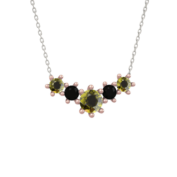 Peridot ve siyah zirkon 18 ayar rose altın kolye (40 cm beyaz altın rolo zincir)