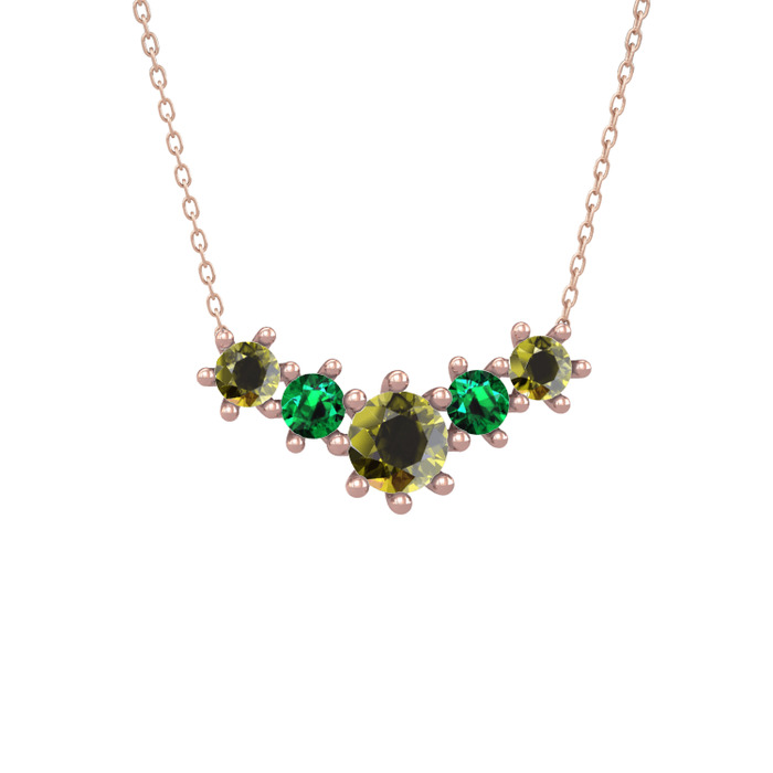Peridot ve yeşil kuvars 14 ayar rose altın kolye (40 cm rose altın rolo zincir)
