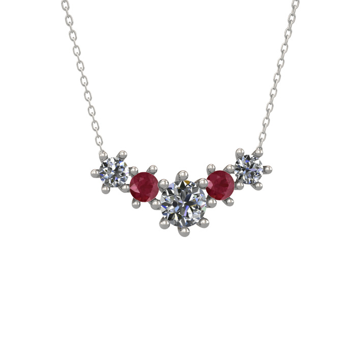 Pırlanta ve kök yakut 925 ayar gümüş kolye (1.98 karat, 40 cm beyaz altın rolo zincir)