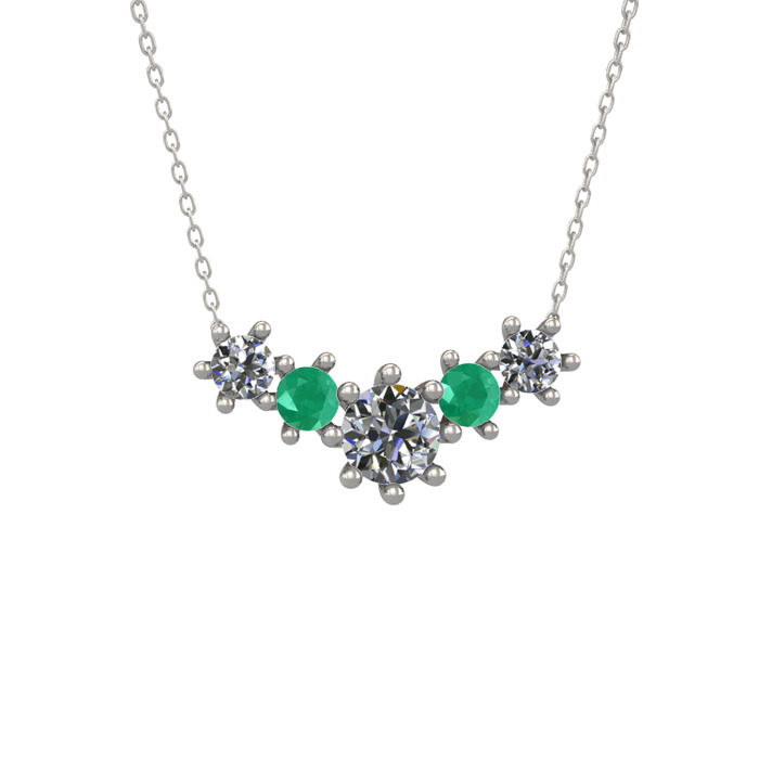 Pırlanta ve kök zümrüt 925 ayar gümüş kolye (1.98 karat, 40 cm beyaz altın rolo zincir)