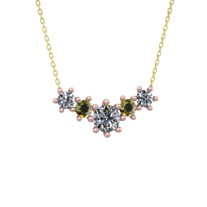 Pırlanta ve peridot 8 ayar rose altın kolye (1.98 karat, 40 cm altın rolo zincir)