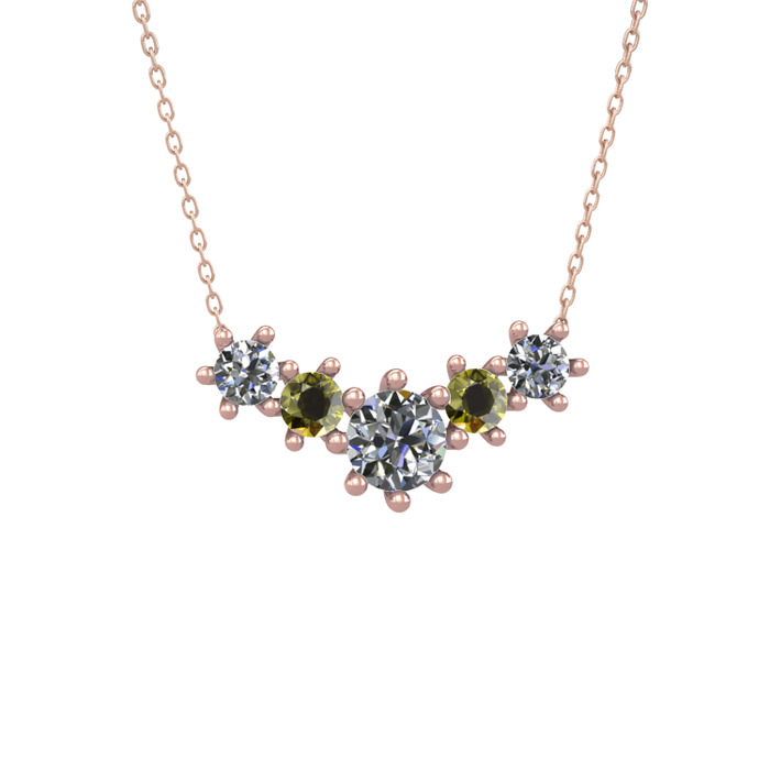 Pırlanta ve peridot 925 ayar rose altın kaplama gümüş kolye (1.98 karat, 40 cm rose altın rolo zincir)