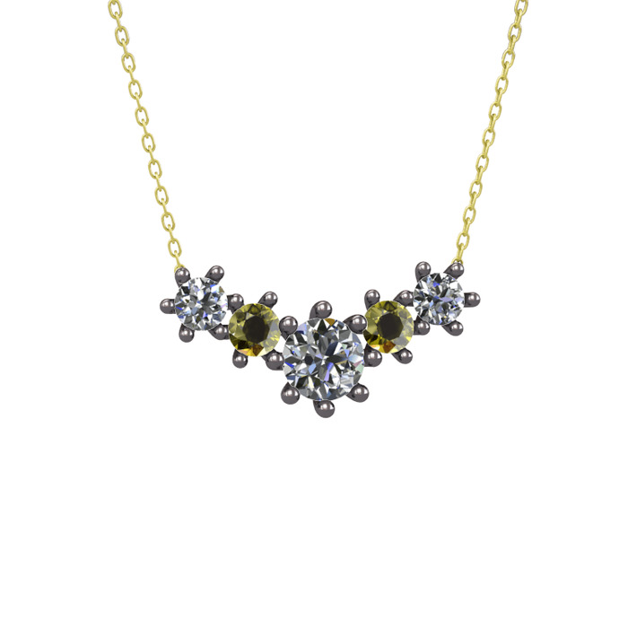 Pırlanta ve peridot 925 ayar siyah rodyum kaplama gümüş kolye (1.98 karat, 40 cm altın rolo zincir)