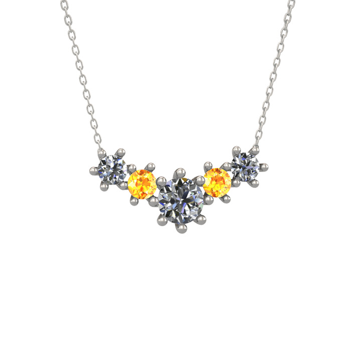 Pırlanta ve sitrin 925 ayar gümüş kolye (1.98 karat, 40 cm beyaz altın rolo zincir)
