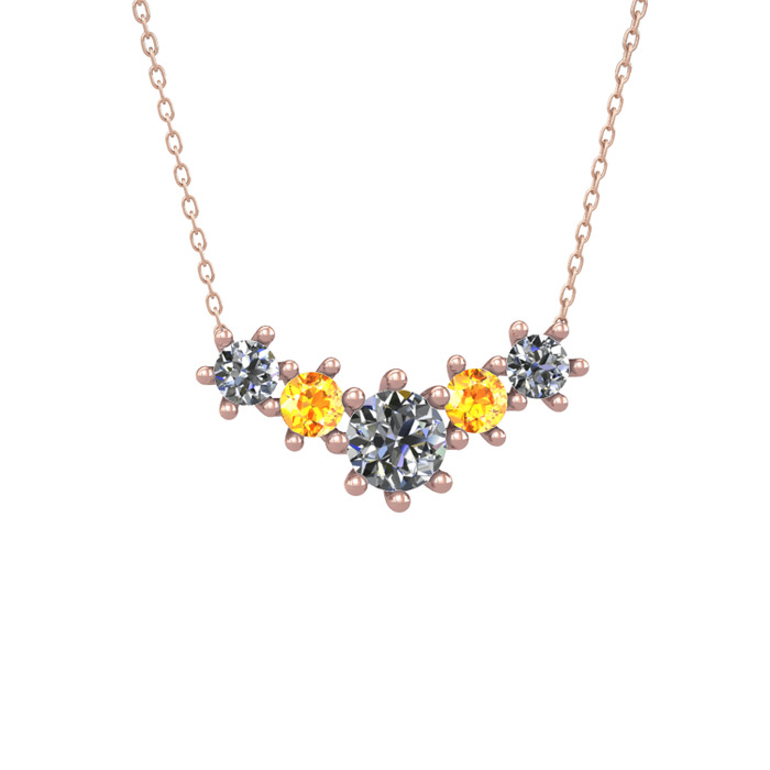 Pırlanta ve sitrin 925 ayar rose altın kaplama gümüş kolye (1.98 karat, 40 cm rose altın rolo zincir)