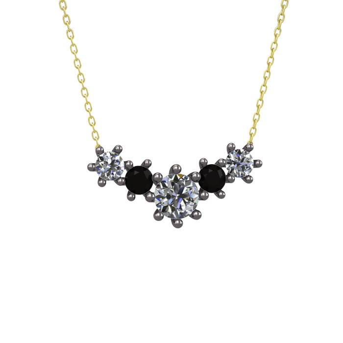 Pırlanta ve siyah zirkon 925 ayar siyah rodyum kaplama gümüş kolye (1.98 karat, 40 cm gümüş rolo zincir)