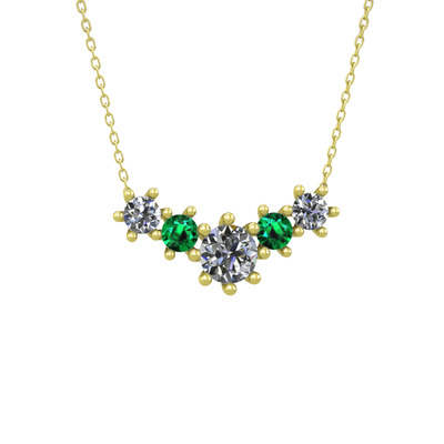 Pırlanta ve yeşil kuvars 14 ayar altın kolye (1.98 karat, 40 cm gümüş rolo zincir)