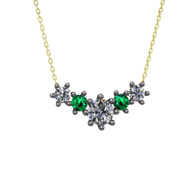 Pırlanta ve yeşil kuvars 925 ayar siyah rodyum kaplama gümüş kolye (1.98 karat, 40 cm altın rolo zincir)