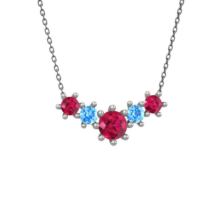 Rodolit garnet ve akuamarin 14 ayar beyaz altın kolye (40 cm gümüş rolo zincir)