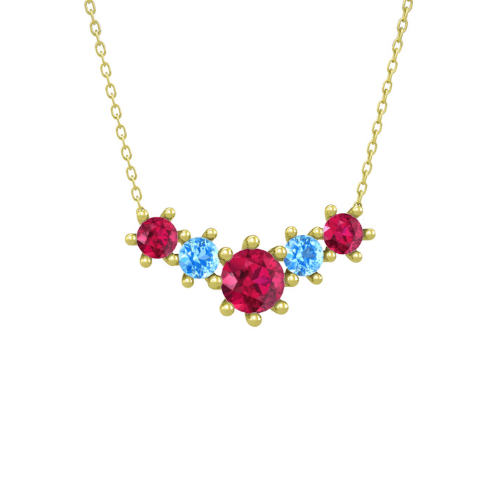 Rodolit garnet ve akuamarin 925 ayar altın kaplama gümüş kolye (40 cm gümüş rolo zincir)
